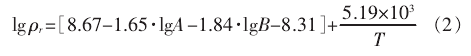 式中:ρr為比電阻,Ω·cm;A為鐵原子百分數;T為煙氣溫度,K;B為鈉和鋰原子的百分數(在625K、40%空隙率時)。