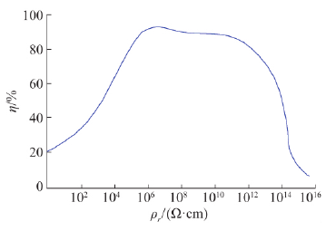 例如在250℃時,粉塵的比電阻為1011Ω·cm;當煙氣溫度上升至380℃時,粉塵的比電阻降低至1.06×109Ω·cm,僅為250℃狀態下的1.06%。靜電電除塵器的除塵效率與粉塵的比電阻直接相關,電除塵要求粉塵比電阻為104~1011Ω·cm。尤其當粉塵的比電阻分布在106~1012Ω·cm之間時,比電阻越小,除塵效率會有所升高,見圖5。