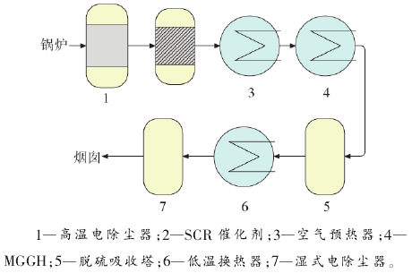 煙氣系統的設備布置采用方式:高溫電除塵器+脫硝裝置+空氣預熱器+MGGH+脫硫裝置+低溫換熱器+濕式電除塵器,見圖3。